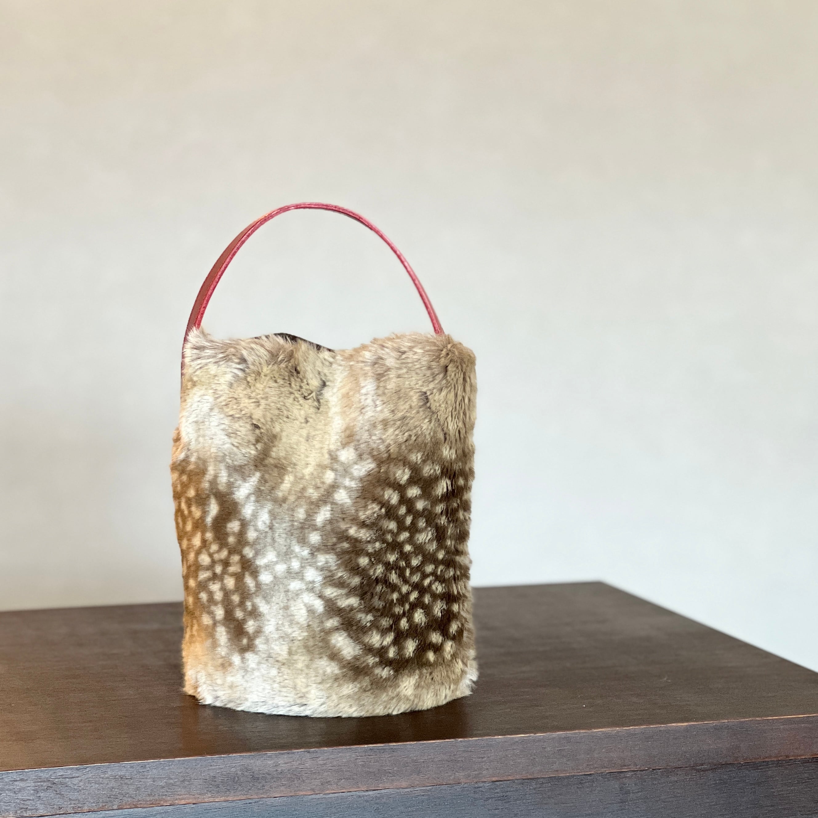 Milihの大人気商品、バケツバッグSサイズに ふわふわモフモフのエコファーが新登場! レザーハンドルをつけてハンドバッグとしても、Dカンとショルダーベルトでナナメがけやワンショルダーにしてショルダーバッグとしてもお使いいただけます! レザーハンドル+Dカン・ショルダーベルトをダブルで付けると、ハンドバッグとしてもショルダーバッグとしてもお持ちいただける2WAY仕様に。 Milihのバケツバッグで一番人気のカスタマイズです。 ※この商品は本体のみですので、オプションから必ずレザーハンドルやDカン付けなどをお選びくださいませ。 奈良のお隣、国内唯一のフェイクファーの産地・和歌山県高野口で作られる上質な国産のフェイクファー(エコファー)。 アクリルの中でもすごくやわらかい糸を使用しているのでふわふわでずっと触っていたくなるような心地よさ。 毛足の長さも17mmととても長く、光沢のある毛並みは高級感もたっぷり。 リアルレザーももちろん素敵ですが、フェイクファーだからこその触り心地・フワフワ感もたまりません♪ 今年はバンビ柄2色、無地2色の4色展開。 バンビはリアルすぎないほんのりバンビ柄なのもポイント。 優しくやわらかいイメージで、ドット柄としても楽しめるような柄行きです。 無地はそれだけで光沢もありとっても上品なイメージ。 どちらも落ち着いたグレーとやさしいベージュでいろんなコーディネートにも合わせやすく、 暗くなりがちな秋冬のスタイルのワンポイントにぴったりです。 裏面のレザー色だけでなく、レザーハンドルの色や金具の色もお選びいただけます。 どの色の組み合わせにするかでもそれぞれ違った印象のバッグに仕上がりそうですね。 ぜひカスタマイズもお楽しみくださいませ。 スマホと小さいお財布・ハンカチと小さいペットボトルも入ってとっても便利なサイズ感。 ぜひこの秋冬のコーディネートのアクセントにいかがでしょうか? ※こちらの生地は柄行きがランダムになります。生地の取り方で一つひとつ柄行きが変わりますのでご了承ください。 こちらのバッグにもまざまなカスタマイズをプラスして、 あなただけのオリジナルバッグをお作りいただけます! ・レザーハンドル ・ホック付け ・レザーベルトホック ・インナーポケット付け(12cm角のパッチポケット) ・Dカン付け(ナナメ掛け仕様にするためのパーツ付け) ・ショルダーベルト ★裏面のレザーへ刺繍をおご希望の方 ※オプションではなく【カスタマイズ 刺繍】商品からご注文ください 刺繍はフォントが7種類、カラーも8種類からお選びいただけます。 入れたい文字(英数字6文字以内)の横に、フォントは1~7の番号、カラーは色名をご記入ください。 【記入例】 M/フォント00/1ブラック/裏面右下 △△商品詳細△△ サイズ:H250×直径160 素材:本体 綿100% / 牛革 付属パーツ 牛革 日本製 made in japan ▲▲attention▲▲ ■レザー系 ※天然皮革を使用した商品のため、生育期にできた傷や部位によりシワなどがあることがございますが、それも含め商品の魅力として使用しております。 素材の特性としてご理解いただいた上でご注文をお願いいたします ■キャンバス系 ※ご使用いただく上で支障ないよう企画しておりますが、商品の仕様上、帆布端のほつれなどが部位によりおこります。 素材の特性としてご理解いただいた上でご注文お願いいたします