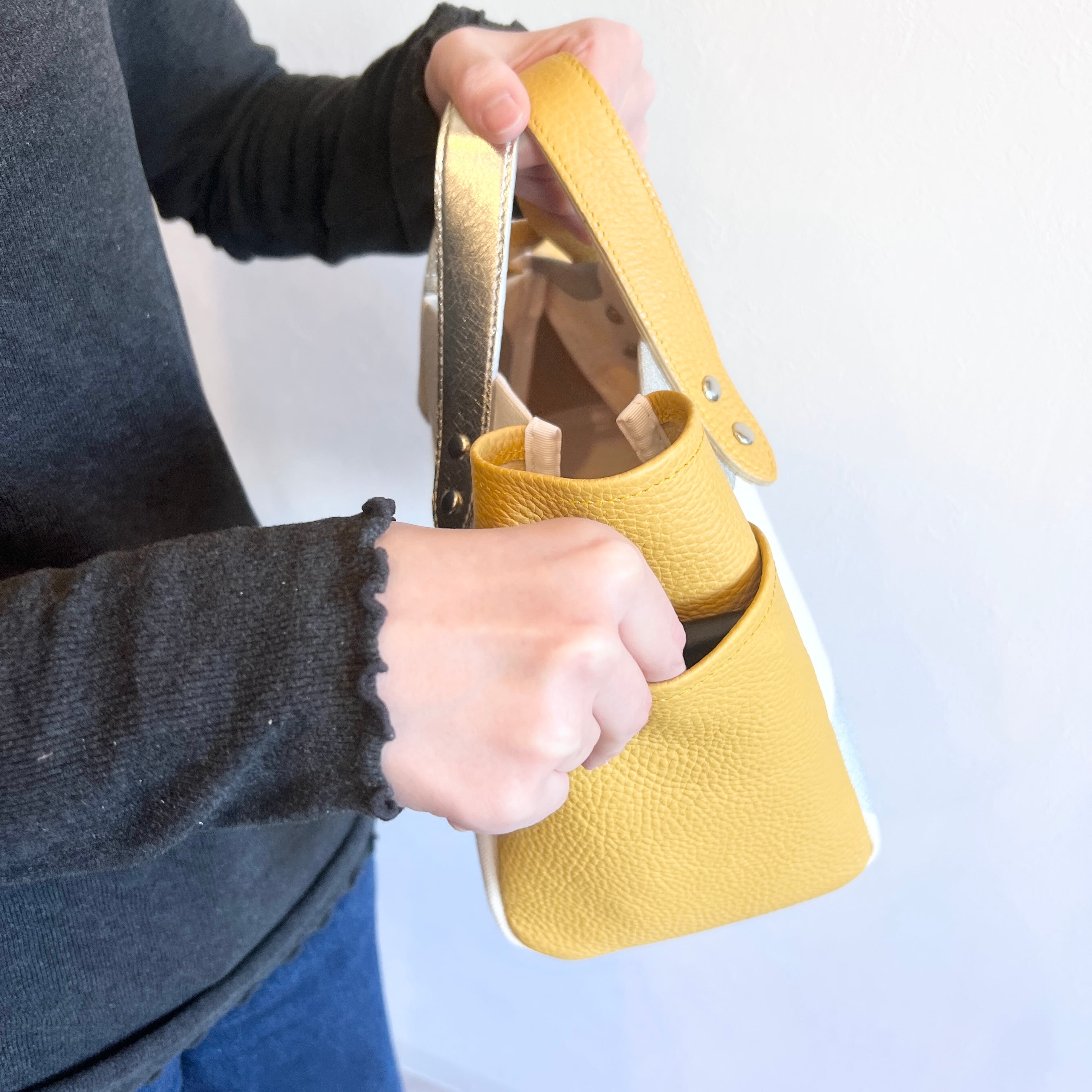 [スクエアトートカスタマイズ]サイドポケット付け *レザー* Sサイズ