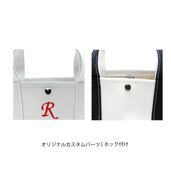 国内産のしっかりした帆布を使用したランチトートバッグ。 ボトムにレザーを使用しているため1ランク上の高級感があり、使っているうちに馴染んでくるので長くお楽しみいただけます。 お弁当箱を入れてランチバッグとしてはもちろん、お財布とスマホだけを持った、ちょこっとしたお出かけにぴったりのサイズです! こちらのバッグをベースにさまざまなカスタマイズをプラスして、 あなただけのオリジナルバッグをお作りいただけます! ・刺繍 ・ホック付け ・Dカン付け(ナナメ掛け仕様にするためのパーツ付け) ・インナーポケット付け ・天ファスナー付け ・サイドホック付け ・ギボシベルト付け ストラップやタッセル・チャームを組み合わせて さらにオリジナル感をアップさせるのも素敵です! ※在庫が無い場合は約2~3週間でお作りしてお届けさせていただきます。ご注文確定メールにて納期をご連絡させていただきますので、ご確認よろしくお願いいたします。 ★刺繍について 刺繍はフォントが7種類、カラーも8種類からお選びいただけます。 入れたい文字(英数字6文字以内)の横に、フォントは00~06の番号、カラーは色名をご記入ください。 【記入例】 M/フォント00/1ブラック △△カスタマイズの組合せについてのご注意△△ ※ホック付けとファスナー付けは同時使用できません ※刺繍と同時にギボシベルト付けをご希望の場合、刺繍がベルトで隠れてしまうため、通常と逆向きに、ベルトをフロント面に固定し背面に向かってベルトをお付けいたします ※サイドホック付けとファスナー付けを同時に使用されると仕様上ごわつきが生じますので、おすすめいたしません △△商品詳細△△ サイズ:H180×W280(底200)×D130 ハンドル高110 素材:本体 綿100% / 牛革 付属パーツ 牛革 日本製 made in japan ▲▲attention▲▲ ■レザー系 ※天然皮革を使用した商品のため、生育期にできた傷や部位によりシワなどがあることがございますが、それも含め商品の魅力として使用しております。 素材の特性としてご理解いただいた上でご注文をお願いいたします ■キャンバス系 ※ご使用いただく上で支障ないよう企画しておりますが、商品の仕様上、帆布端のほつれなどが部位によりおこります。 素材の特性としてご理解いただいた上でご注文お願いいたします