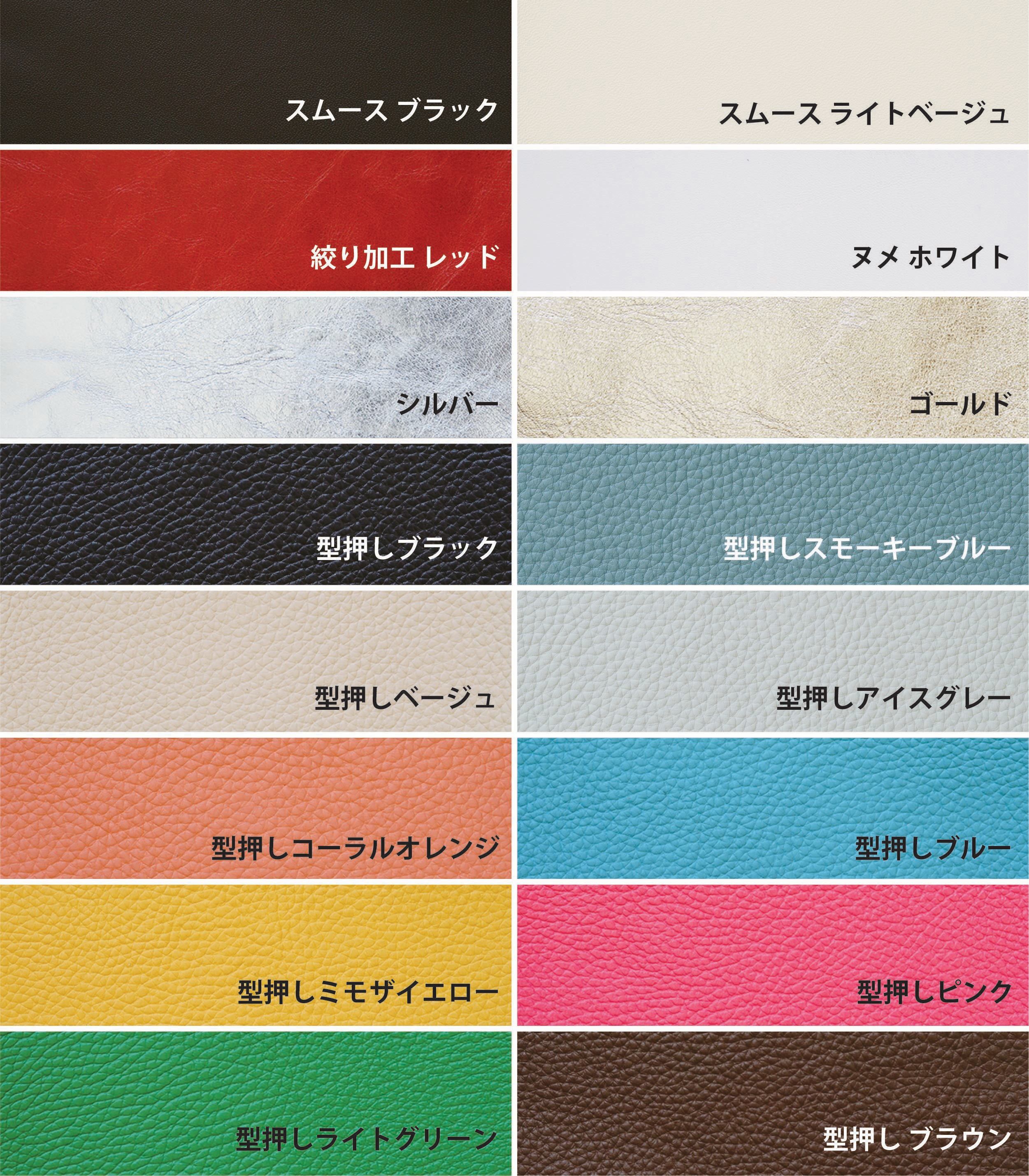 背面にはスムースレザーを使用しており、4色からお選びいただけます。