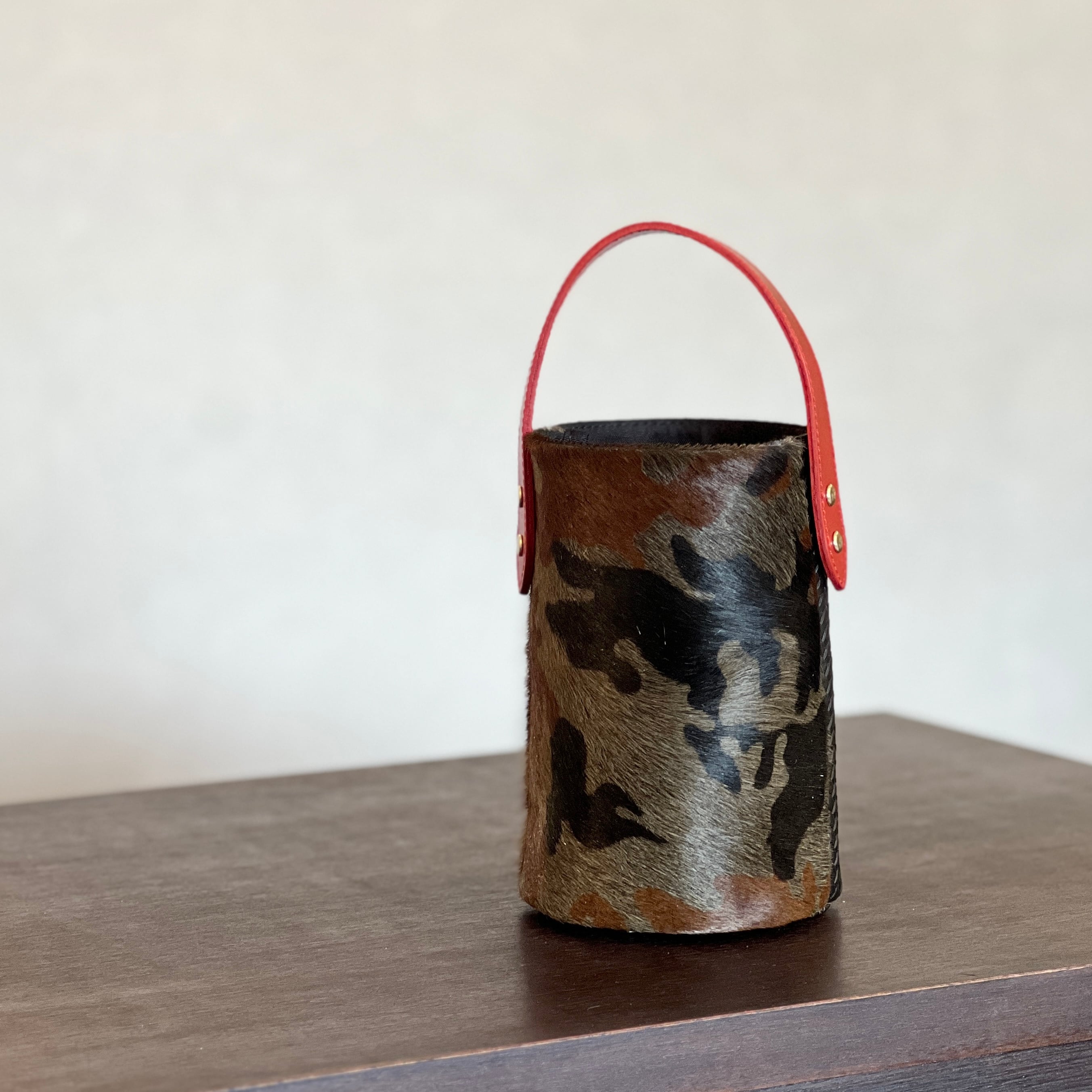 Milihの秋冬の一番人気、ハラコレザーを使ったバケツバッグのミニサイズ。
